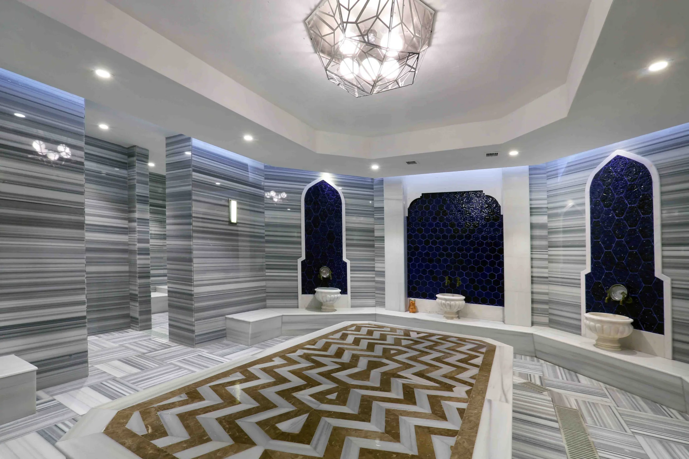 This project includes premium natural stone selection, precision cutting, and large-format installation for a luxury hotel lobby.